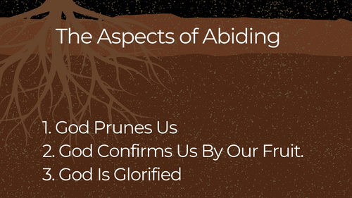 God prunes us to make us more dependent on Him. He doesn't prune us to discourage us but to teach us to abide in Christ—the true Source of life. Abiding in Christ means living in obedient dependence on His constant supply of grace—grace that is Himself.